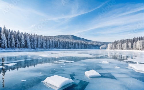 極寒の地の風景氷と雪に覆われた景色と冬の空