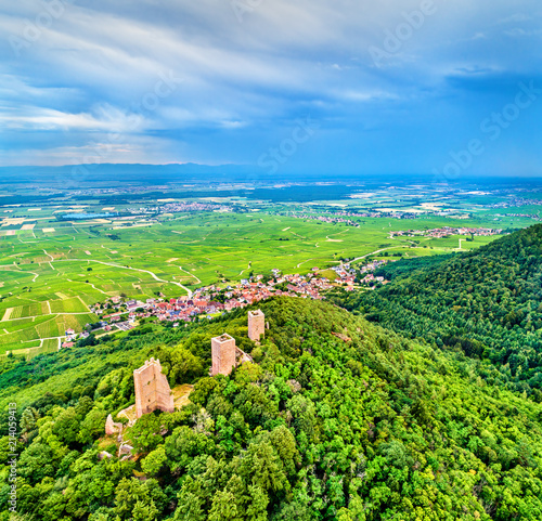 The Three Castles of Eguisheim or Husseren-les-Chateaux in the Haut-Rhin department of France