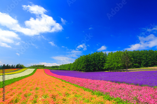 ラベンダーと小町草とカリフォルニアポピーなどの花畑, 中富良野町,空知郡,北海道
