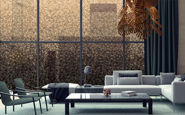 下から上にグラデーションを織りなすトライアングルのパターン。