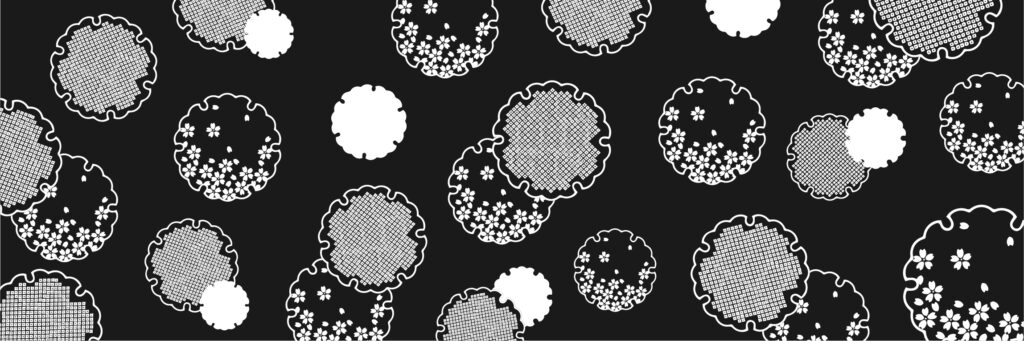 雪輪の文様を桜にアレンジ!おしゃれで可愛くも和を感じさせるデザインです。 旅館やホテルの廊下など和の空間にいかがでしょうか。 ご希望の色への変更や柄の大きさの変更が可能です。お気軽にお問い合わせ下さい。
