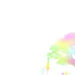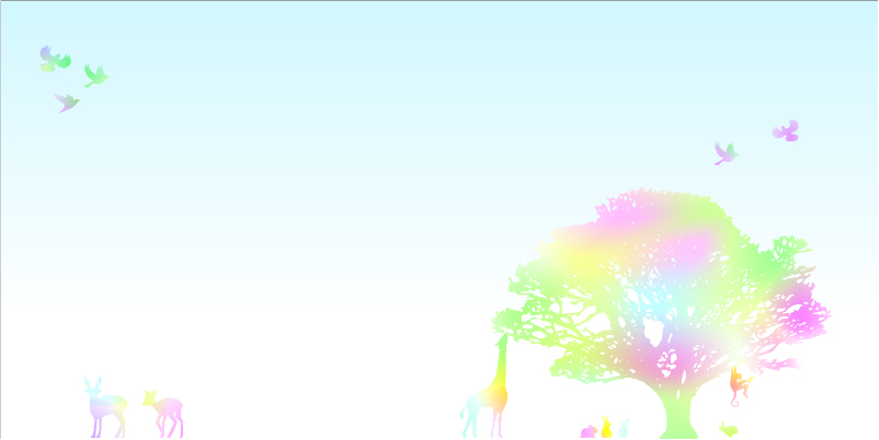 幻想的な動物達の住む森をパステルカラーで優しく描いた、 色々なインテリアに似合うグラフィック。